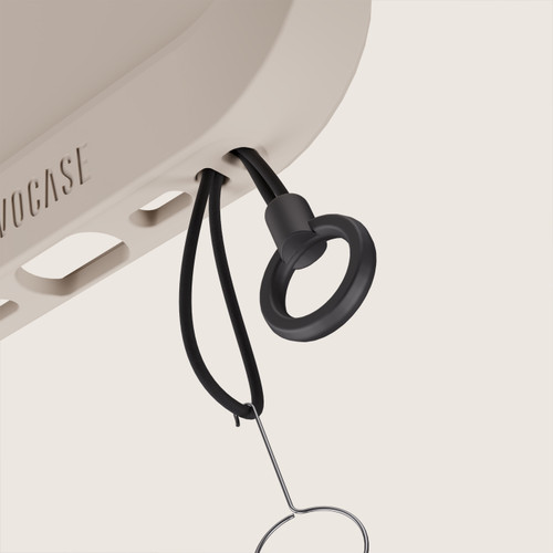 Étape 1 : Retirez votre téléphone de la coque NIVOCASE et faites passer la languette en plastique dans l’œillet de la coque. Le crochet métallique fourni vous facilite l’opération.